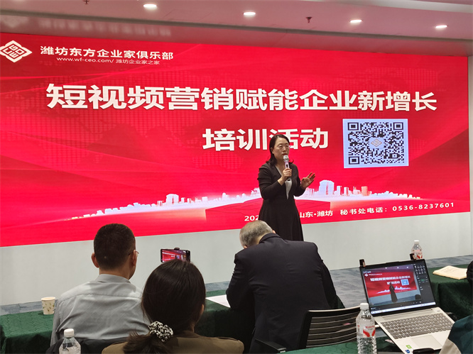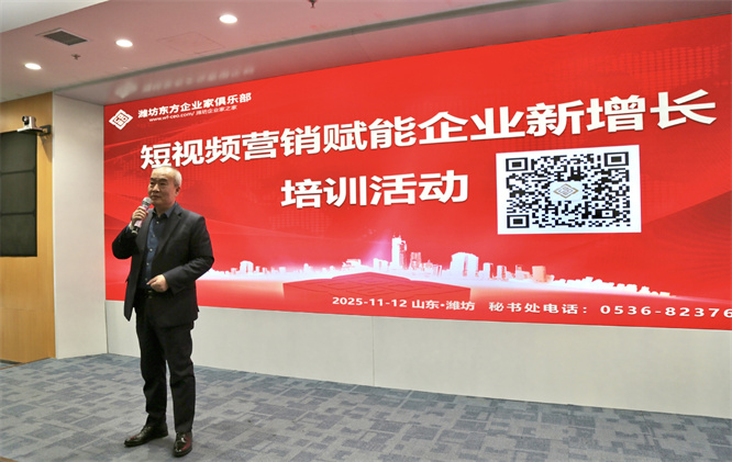 11月12日,由潍坊东方企业家俱乐部(以下简称“企业家俱乐部”)主办的“短视频营销赋能企业新增长”学习培训活动在恒信大厦圆满举行。本次活动旨在帮助企业家群体把握短视频时代机遇,通过系统化学习提升企业线上营销能力,助力企业实现数字化转型与突破性增长。80余家企业代表及行业精英齐聚一堂,共探短视频营销新路径。