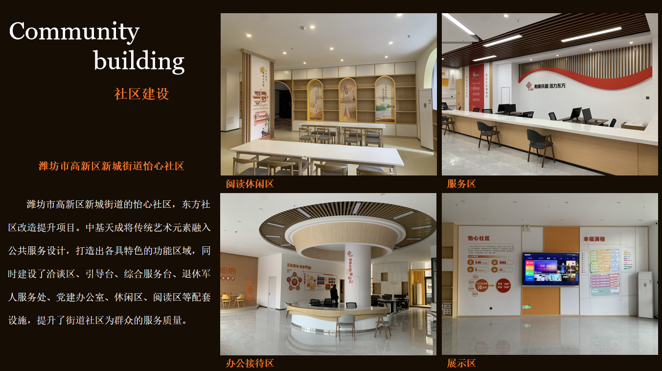 中基天成(山东)装饰工程有限公司是集家装、公装、设计、施工、材料配送、环境绿化、广告策划于一体的综合型装饰工程企业,立足山东潍坊,深耕装饰行业二十余年,以匠心筑基,演绎全新生活方式为品牌理念,为客户提供全链条、高品质空间解决方案。