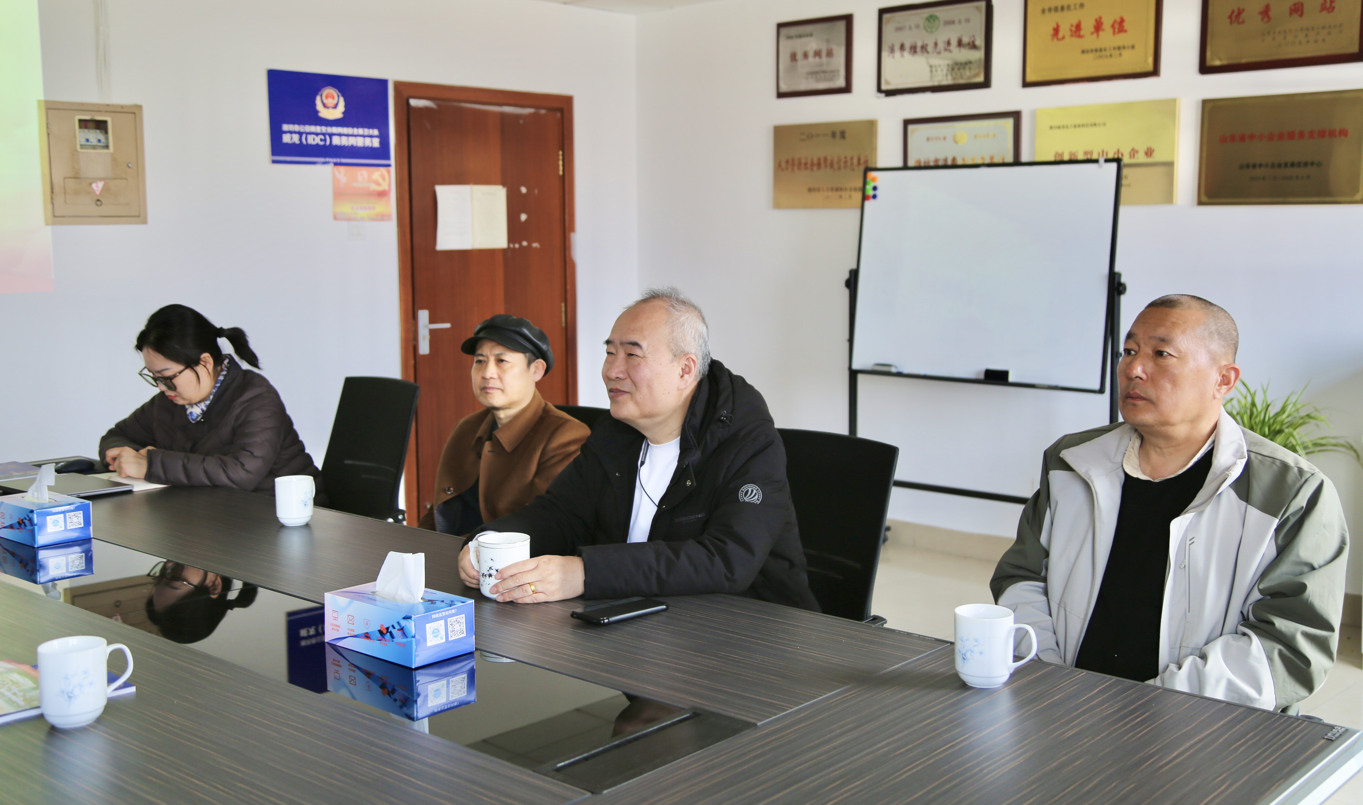 3月24日,北京市文联北京龙虎书画会会长单小勇,潍坊市书画艺术对外交流协会常务会长韩子富、副会长兼秘书长谭连华,山东凯鹏农业机械有限公司董事长张利民一行到访潍坊东方企业家企业家俱乐部(以下简称“企业家俱乐部”)。企业家俱乐部理事长王大威,潍州书画院院长陈建立,北京龙虎书画会潍坊松园子美术馆馆长唐立强,执行秘书长张帅帅等热情接待。